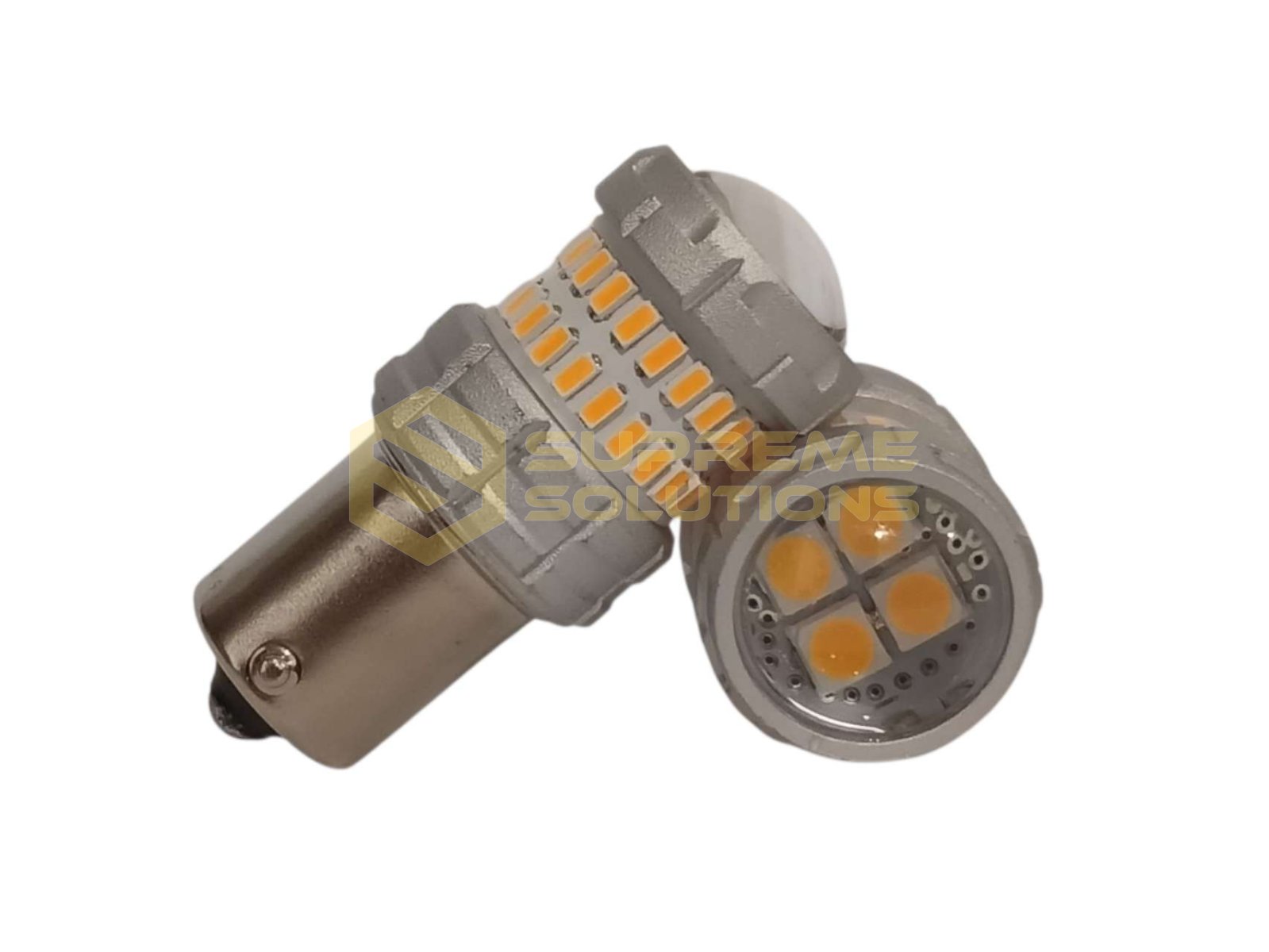 LED лампа 1156 3014-48SMD + 4SMD 3030, 9–30V, жовта, 150°, одноконтактна — це покращений варіант ламп повороту R5W / R10W / P21W із напрямленою оптикою.