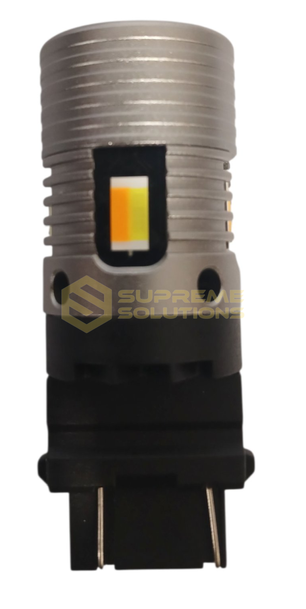 LED лампа 12–18V 3157 CSP7035 DUAL-FAN CANBUS (двоконтактна, Білий/Жовтий) — це багатофункціональна двоколірна LED заміна стандартних ламп P21/7W (3157), які застосовуються в режимах ДХВ + поворот.