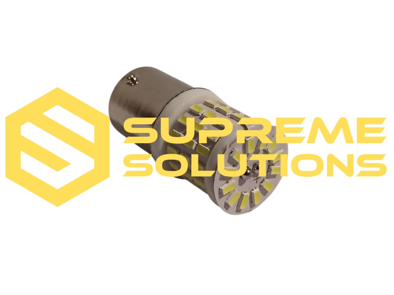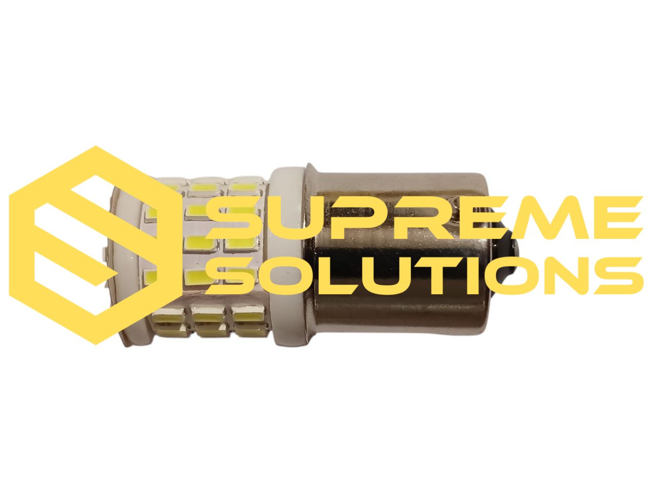 The SUPREME SOLUTIONS 1156-3014-57SMD CERAMIC LED bulb is a premium single-contact replacement for R5W, R10W, and P21W. Built with 57 high-output 3014 SMD LEDs and a ceramic body, this bulb ensures excellent heat dissipation and consistent bright white light.