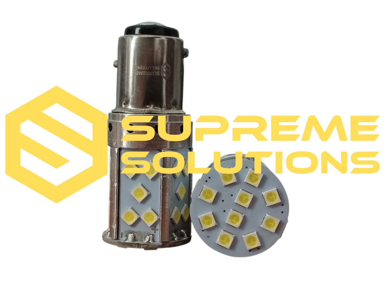 The SUPREME SOLUTIONS 1157-3030-35SMD LED bulb delivers powerful illumination and reliable performance. Designed with 35 premium Samsung 3030 chips, it operates on 12–24V and fits BAY15d dual-contact bases – perfect for replacing P21/5W bulbs.