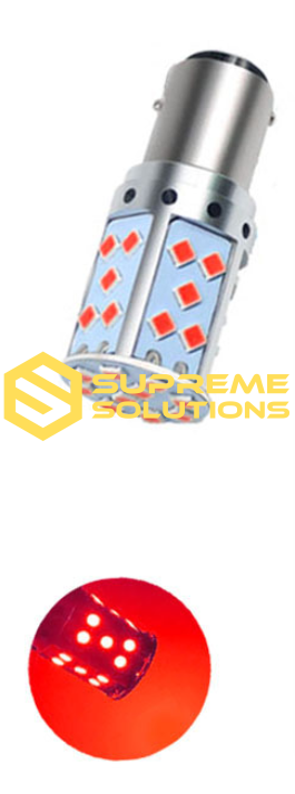 The SUPREME SOLUTIONS 1157-3030-35SMD LED bulb delivers intense red lighting powered by 35 premium Samsung 3030 SMD LEDs. Compatible with 12–24V systems, this bulb is an excellent replacement for traditional P21/5W bulbs.