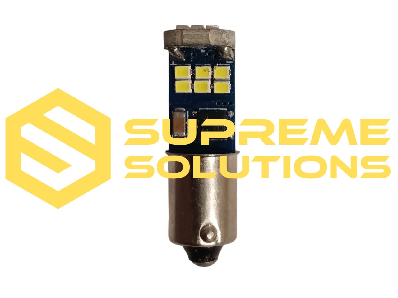 BA9s-2616-18SMD is a high-performance LED bulb featuring 18 ultra-bright 2616 SMD chips. It includes a built-in CANBUS driver, ensuring error-free operation in most modern vehicles. Designed for both 12V and 24V systems, this bulb fits a standard BA9s base, replacing traditional T4W bulbs in dashboards, side markers, and interior lights.