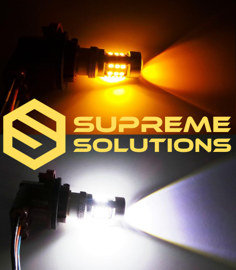 The 1157-3030-30SMD White/Yellow bulb is a dual-function LED with white light for daytime running and yellow flashing for signaling — all in a compact design.