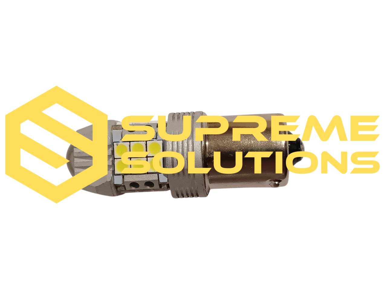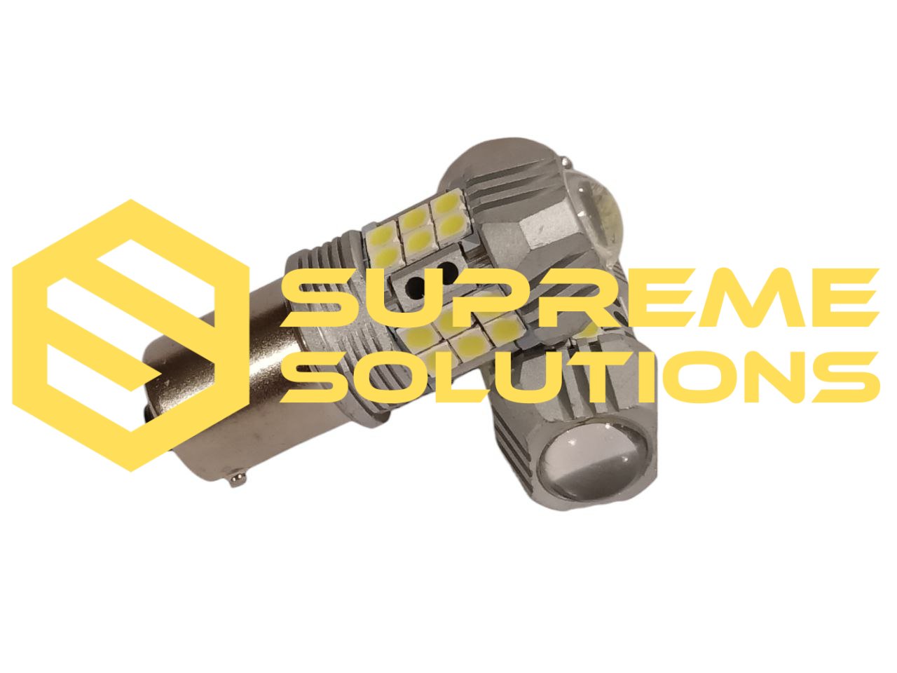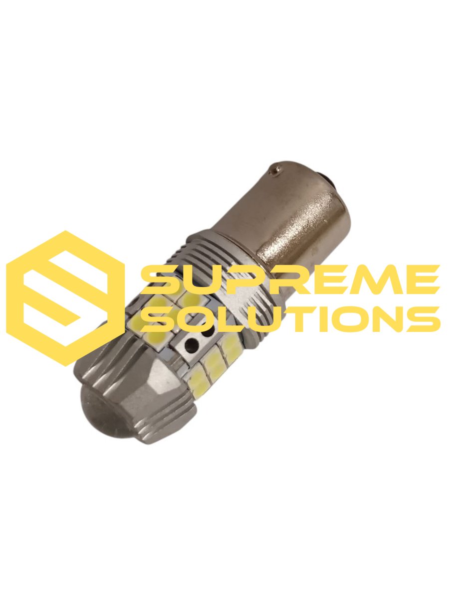 SUPREME SOLUTIONS 1156-3030-27SMD LED bulb features 27 high-power Samsung 3030 LEDs for bright and uniform white illumination. Operating at 12–24V and equipped with a standard BA15s base, it is an ideal replacement for P21W bulbs.