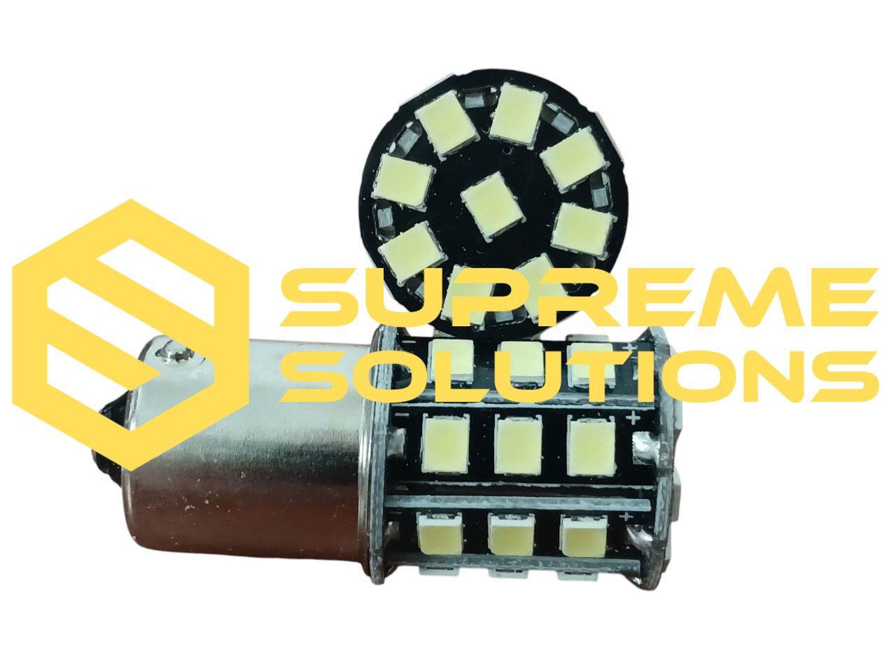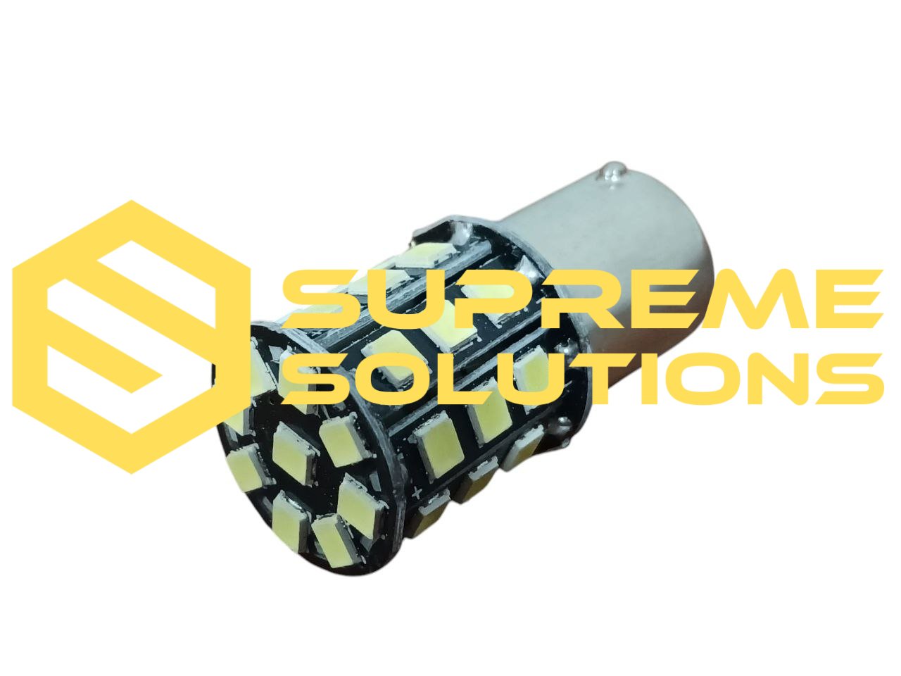 The SUPREME SOLUTIONS 1156-3030-28SMD LED bulb is engineered to deliver high-intensity white light using 28 pieces of 3030 SMD LEDs. Operating at 12V, this bulb is a direct replacement for R5W, R10W, and P21W.