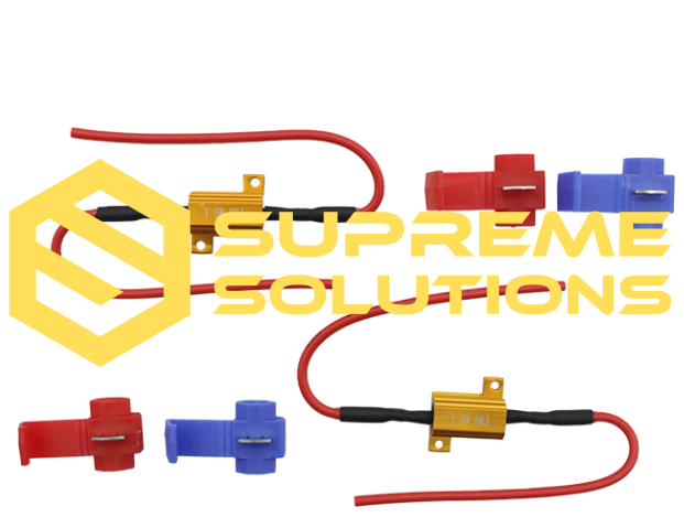 The SUPREME SOLUTIONS 12V 10W load resistor (error canceller) is designed to prevent dashboard errors when replacing halogen bulbs with LEDs. It simulates the current draw of a standard bulb, allowing the vehicle's CANBUS system to recognize the LED as a functioning lamp.