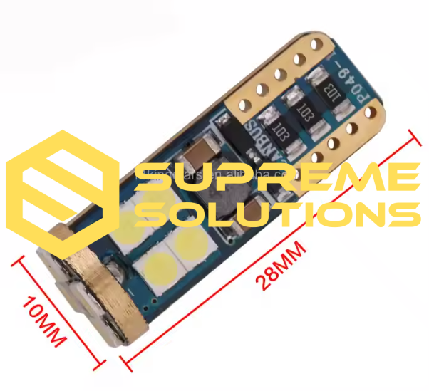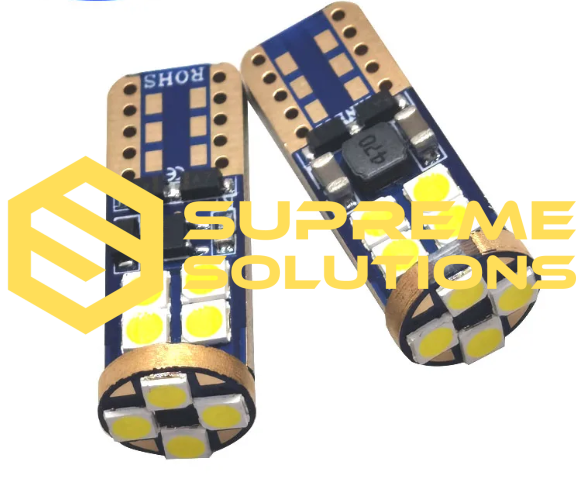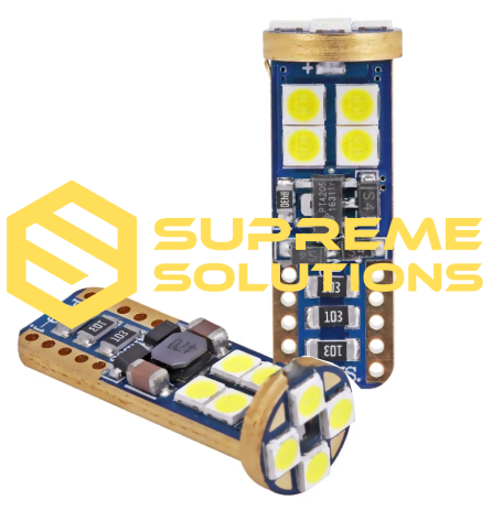 The T10-3030-12SMD Samsung is a powerful white LED bulb designed for automotive use. Equipped with 12x 3030 Samsung chips and a Super CANBUS driver, it ensures stable 12V operation without triggering dashboard errors.