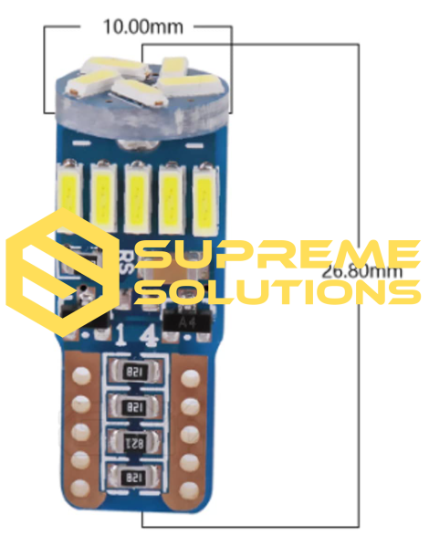 T10-4014-15SMD LED Bulb (Red, 12V) is a compact and efficient light solution featuring 15 high-brightness SMD 4014 LEDs. Designed with non-polarity for simple installation and CANBUS compatibility to avoid dashboard errors. The vivid red glow makes it a great choice for marker lights, ambient lighting, or tuning projects.