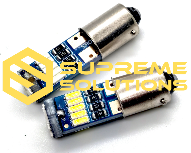 The T4-4014-15SMD CANBUS LED bulb is designed to replace traditional T4W bulbs (BA9s base) in your vehicle. Featuring 15 bright red 4014 SMD chips, it provides strong 360° illumination with a vivid red hue.