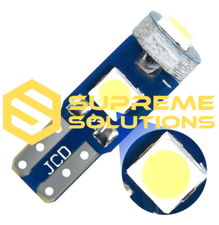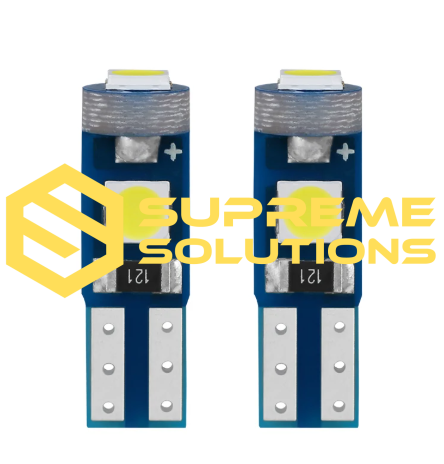 T5-3030-3SMD Samsung 12V — a powerful LED replacement for W1.2W dashboard bulbs.