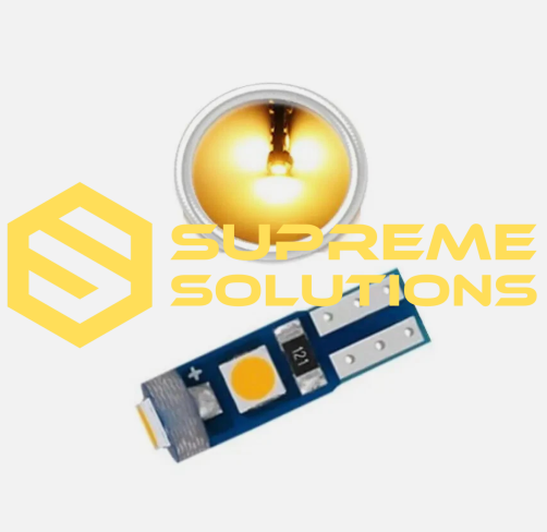 T5-3030-3SMD Samsung 12V — a powerful LED replacement for W1.2W dashboard bulbs.