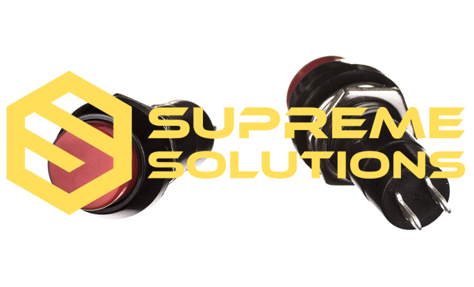 The SUPREME SOLUTIONS red latching switch is a versatile control component for automotive and electronic applications. Its locking mechanism keeps the switch in the ON or OFF position after pressing, making it ideal for continuous operation of devices.