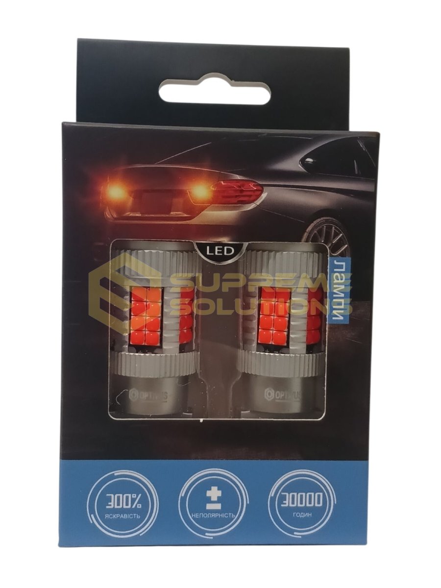 OPTIVUS 3157-3030-40SMD CANBUS 30W (Red) — це преміальна двоконтактна LED-лампа, призначена для стабільної роботи в режимах габарит + стоп або інших комбінованих схем задньої автомобільної оптики.
