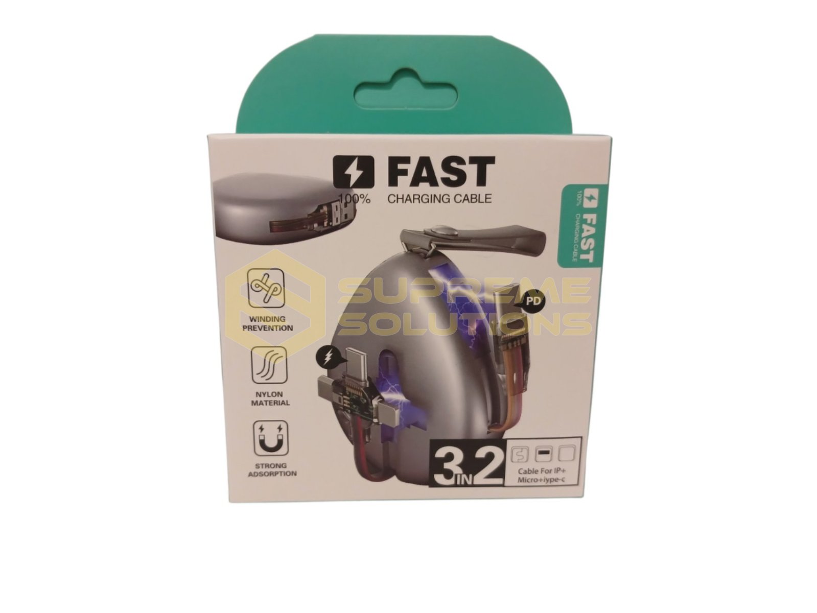 Телескопічний кабель OPTIVUS 3-в-1 для автомобіля — це практичне та універсальне рішення для заряджання декількох пристроїв під час поїздок. Один кабель поєднує в собі три найпопулярніші роз’єми: iOS (iPhone), USB Type-C та Micro-USB, що робить його сумісним із більшістю смартфонів, навігаторів, відеореєстраторів, power bank та інших мобільних пристроїв.