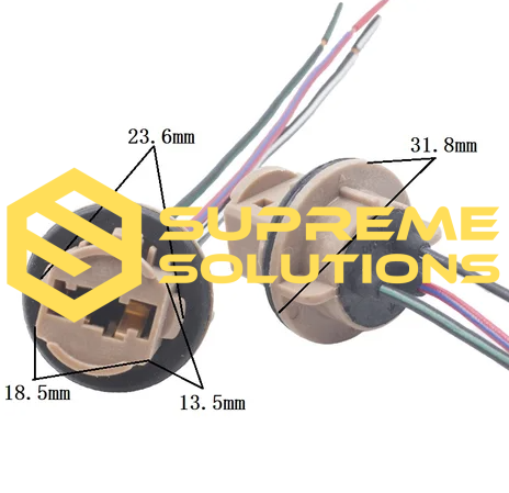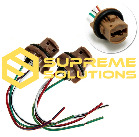 Патрон SUPREME SOLUTIONS для лампи 7443 (W21/5W) — це надійний двоконтактний роз’єм, який забезпечує стабільне живлення для габаритних і стоп-сигналів. Він виготовлений зі стійкого до високих температур пластику та розрахований на використання як зі звичайними галогенними лампами, так і з сучасними LED-лампами.