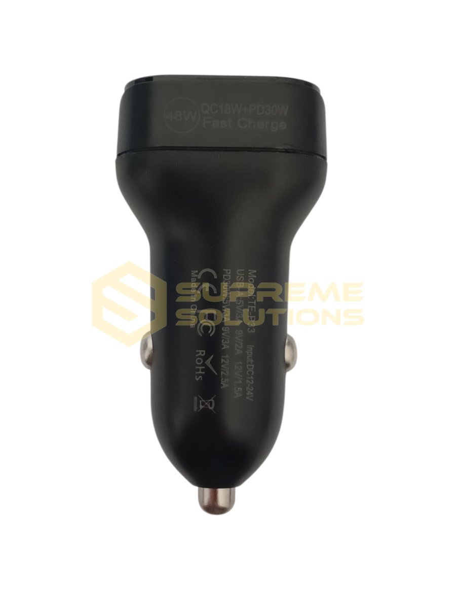 Автомобильная зарядка PD30W + QC3.0 (48W) предназначена для быстрой и безопасной зарядки современных электронных устройств в автомобиле.