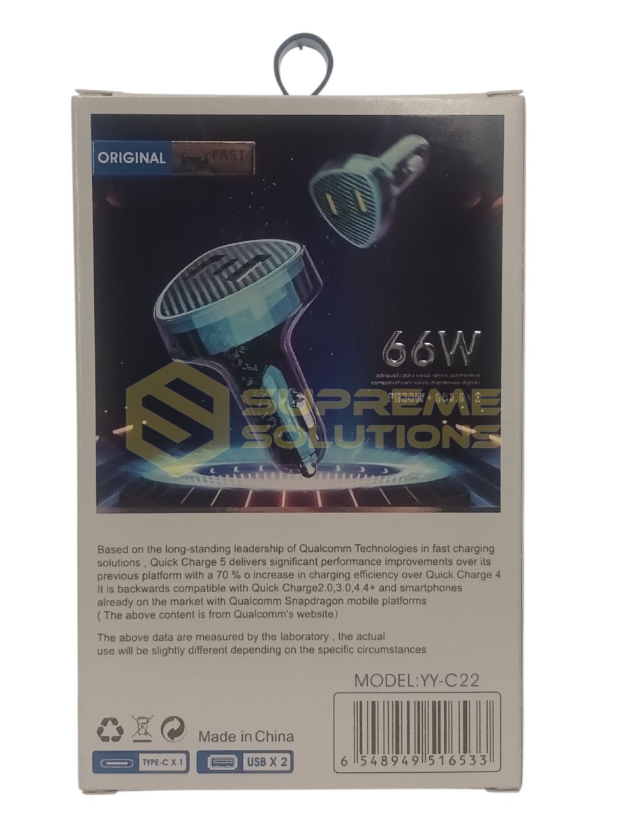 Автомобильная зарядка YY-C22 66W (PD30W + QC3.0×2) предназначена для быстрой и стабильной зарядки современных электронных устройств в автомобиле. Оснащена тремя портами: одним USB-C с Power Delivery и двумя USB-A с Quick Charge 3.0.