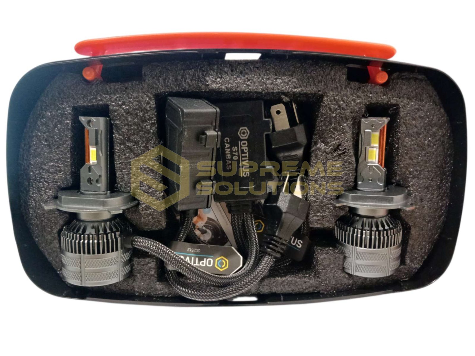 OPTIVUS S70 H4 CANBUS 70W 12000LM 6000K — это премиальная светодиодная лампа головного света с функцией Hi/Lo (ближний и дальний свет), разработанная для максимальной эффективности и надёжности.