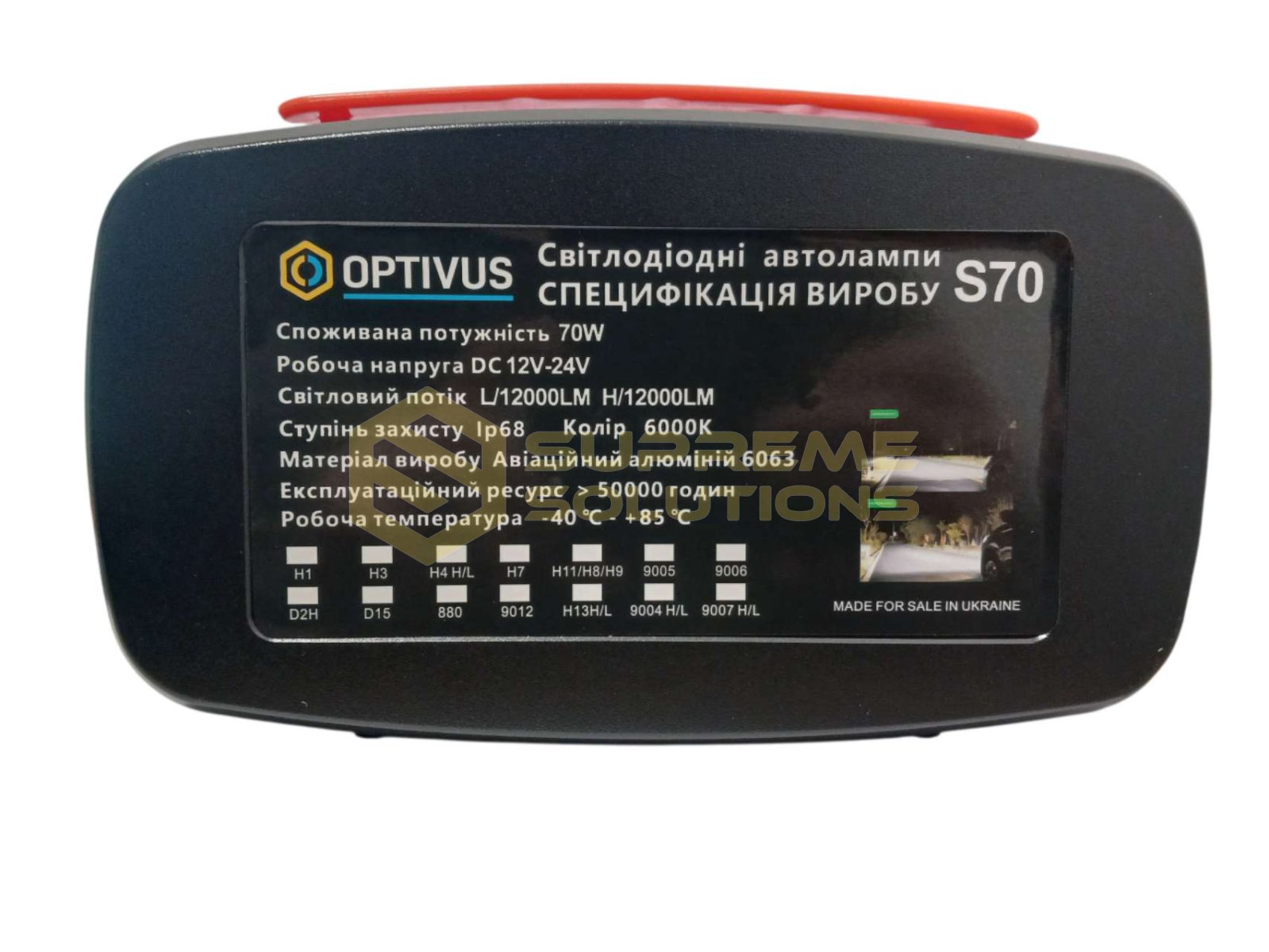 OPTIVUS S70 H11 CANBUS 70W 12000LM 6000K — это премиальная светодиодная лампа головного света и противотуманных фар, разработанная для стабильной работы, высокой яркости и долговечности.