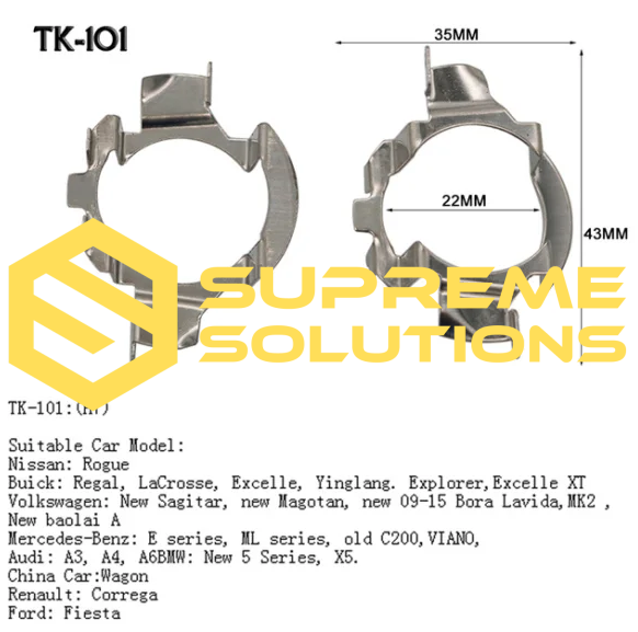 Адаптер TK-101 (H7) призначений для встановлення LED ламп у фари автомобілів із нестандартним цоколем. Сумісний із моделями Audi, BMW, Mercedes-Benz, VW, Opel, Nissan. Забезпечує надійне та швидке кріплення без модифікацій фари.